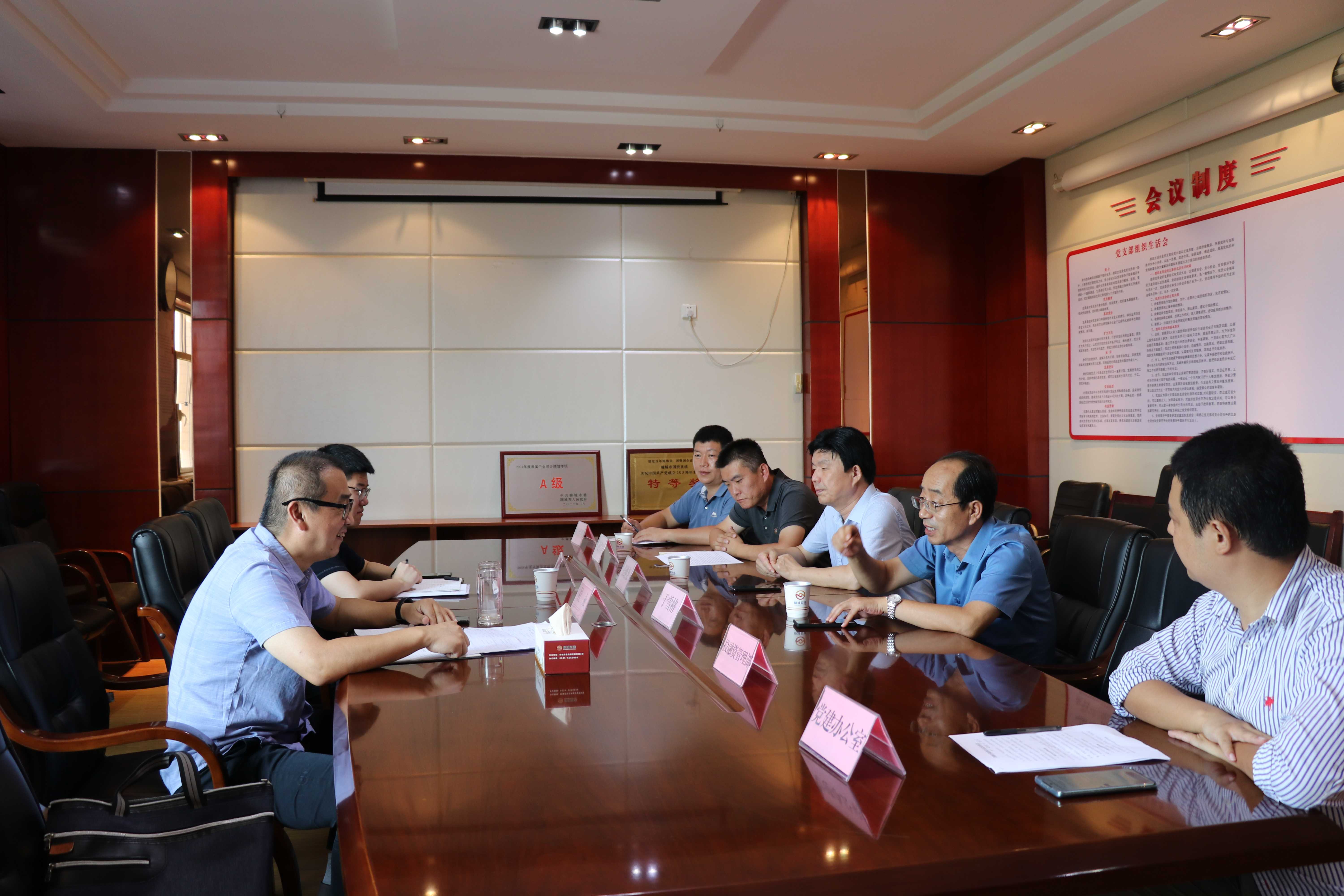 8月5日上午,市國資委黨委委員、副主任杜永蒞臨財金集團調研指導工作,黨委書(shū)記、董事長(cháng)張繼堯,黨委副書(shū)記、董事、總經(jīng)理于雪格,副總經(jīng)理趙青賓及有關(guān)工作負責人員參加座談。