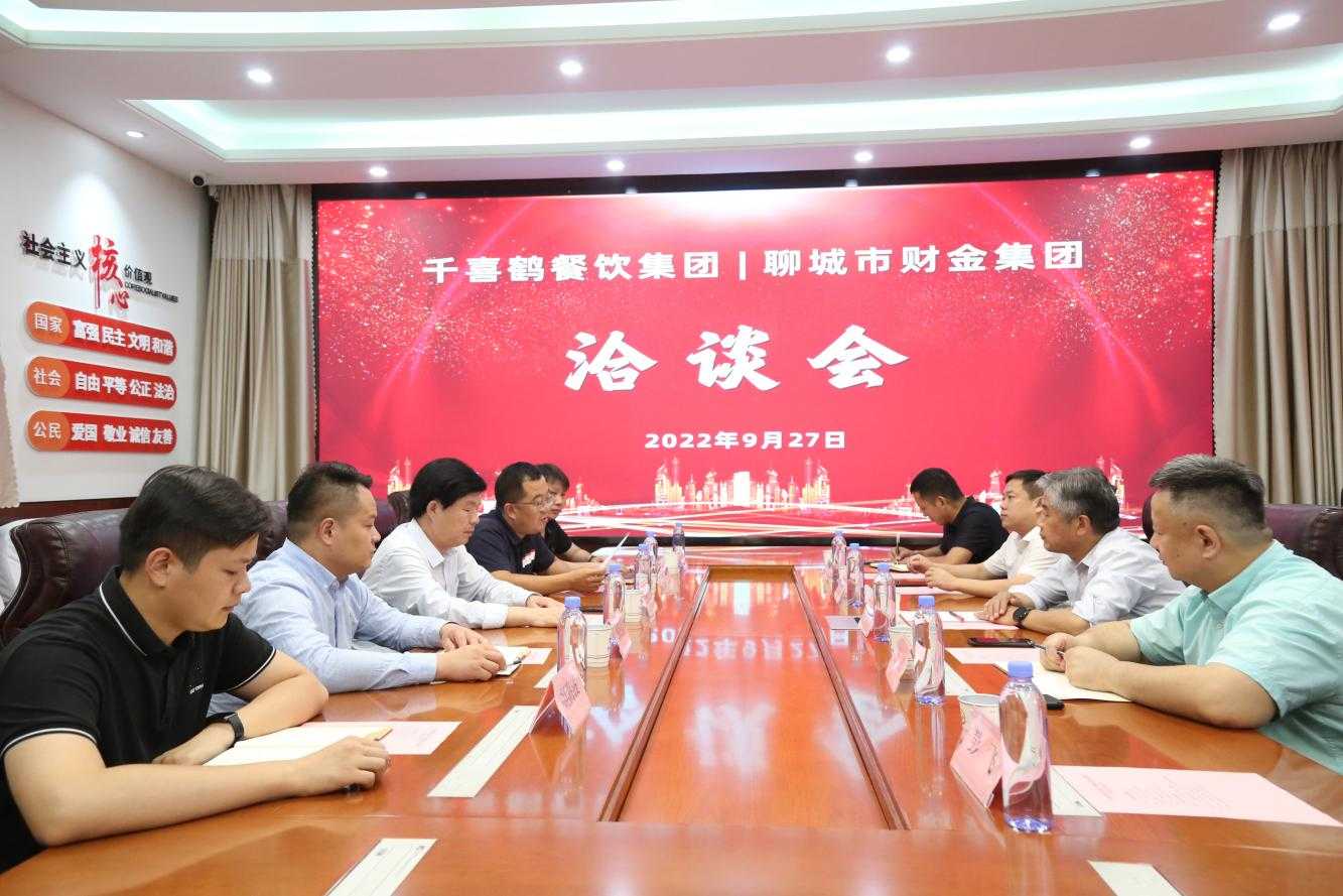9月27日下午,千喜鶴餐飲集團總裁李中明、華東區總裁魏武等人一行受邀來(lái)到市財金集團,雙方召開(kāi)洽談會(huì ),共同就聊城市餐飲服務(wù)項目合作事宜進(jìn)行交流對接。市財金集團黨委書(shū)記、董事長(cháng)張繼堯,董事會(huì )秘書(shū)、總經(jīng)理助理、財金城市發(fā)展公司董事長(cháng)王躍及有關(guān)負責人出席會(huì )議。