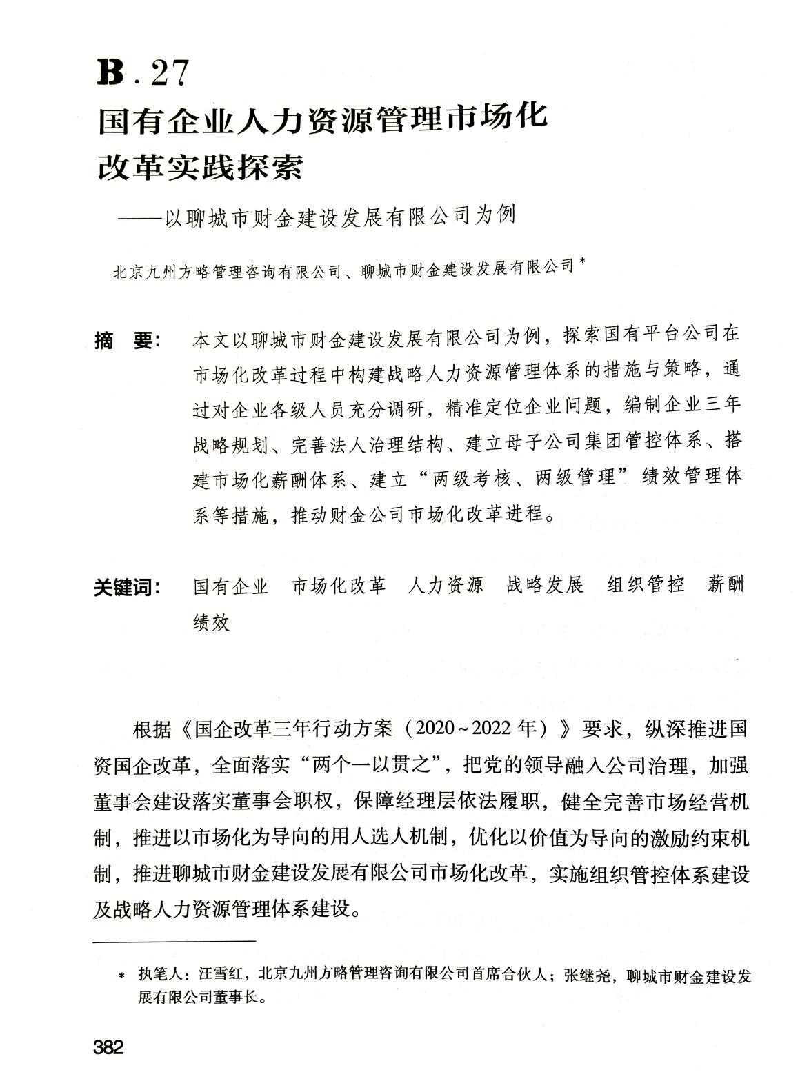 近日,中國人事科學(xué)研究院發(fā)布《中國企業(yè)人力資源發(fā)展報告(2022)》,聊城市《國有企業(yè)人力資源市場(chǎng)化改革實(shí)踐探索案例---以聊城市財金建設發(fā)展集團有限公司為例》入選。該報告屬于《人力資源藍皮書(shū)》系列,由中國人事科學(xué)研究院出版(隸屬于中華人民共和國人力資源和社會(huì )保障部),是我國干部人事改革、人才資源開(kāi)發(fā)、人力資源管理和公共行政學(xué)研究的唯一國家級專(zhuān)業(yè)研究機構,是中央人才工作協(xié)調小組辦公室命名的“人才理論研究基地”。此報告為年度出版,匯集了央企和地方國企、知名民營(yíng)企業(yè)和外資企業(yè)在人力資源開(kāi)發(fā)與管理、人事制度改革創(chuàng )新等方面的實(shí)踐探索,為我國企業(yè)人力資源開(kāi)發(fā)和管理工作提供了借鑒,為政府政策的制定提供了參考。2022年度中國人力資源發(fā)展報告共入選7篇案例,除市財金集團為地市級國有企業(yè)外,其余均為軍工、能源、運輸類(lèi)央企。